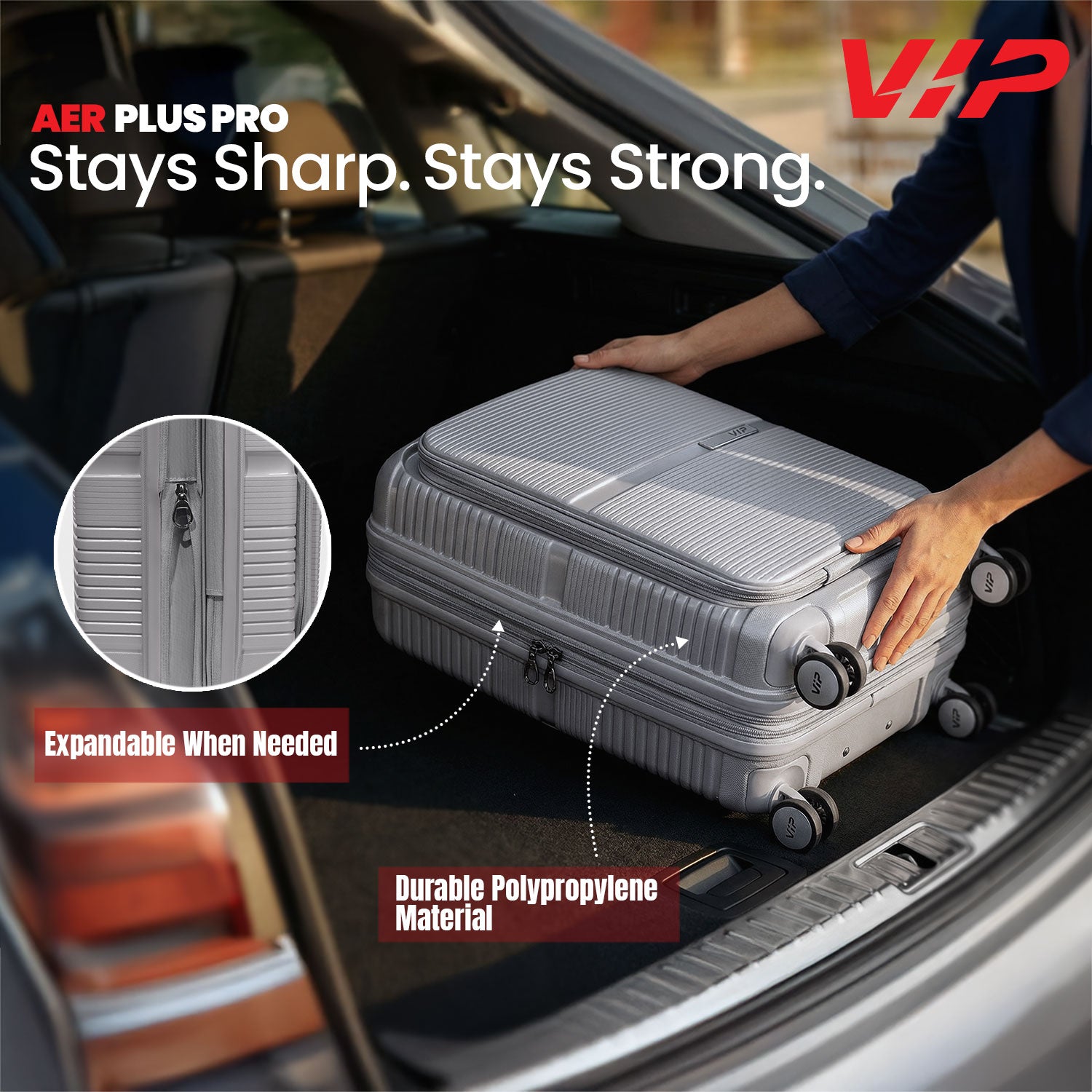 Designed for professionals who travel often, the VIP Aer Plus Pro Cabin Trolley Bag combines durability, smart organisation, and effortless mobility. Crafted from high-quality polypropylene, this hard suitcase offers superior strength while remaining lightweight for frequent business trips.