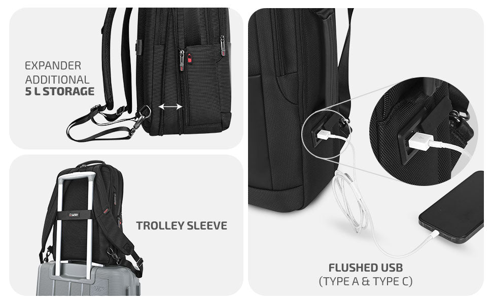 - SMART COMFORT WITH EXPANDABLE STORAGE : Designed for modern mobility, it features padded shoulder straps, a ventilated mesh back panel, and a trolley sleeve for seamless travel. A dedicated side compartment offers easy access in briefpack mode, while a 5L expander provides extra space when the day demands more.