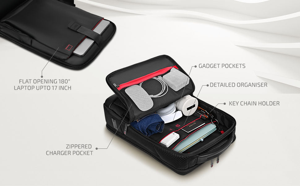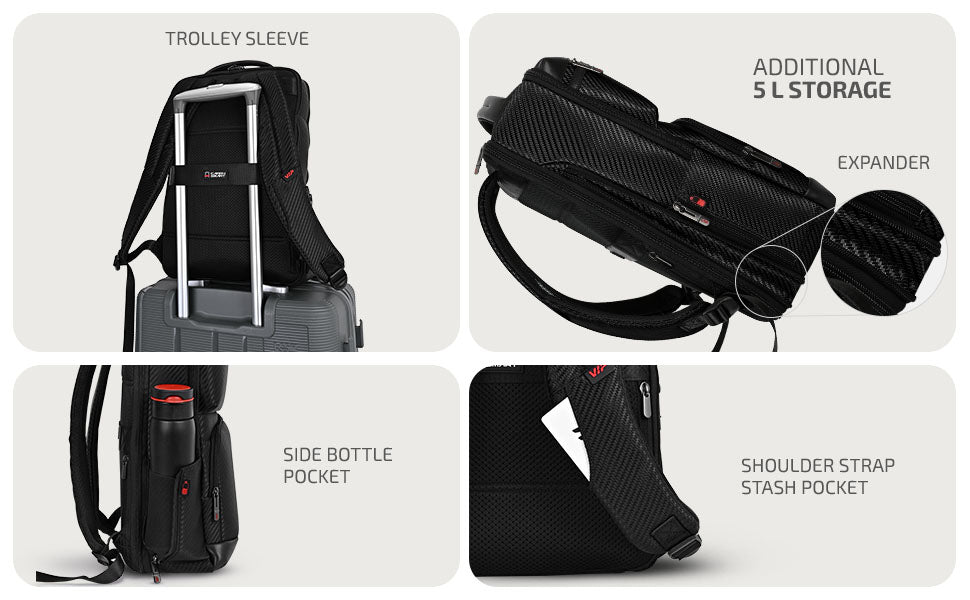 - SMART COMFORT WITH EXPANDABLE STORAGE : Designed for modern mobility, it features padded shoulder straps, a ventilated mesh back panel, and a trolley sleeve for easy travel. A hidden back pocket secures valuables, while a 5L expander gives you extra space when the day demands more
